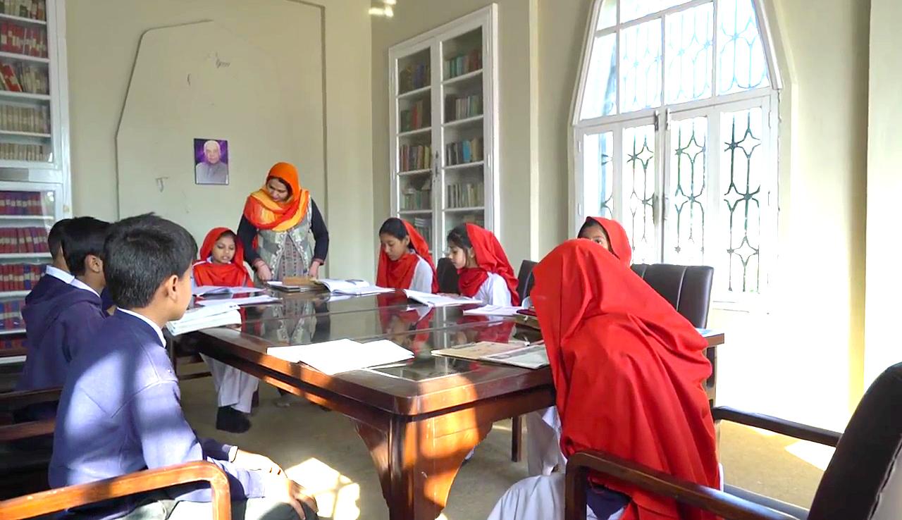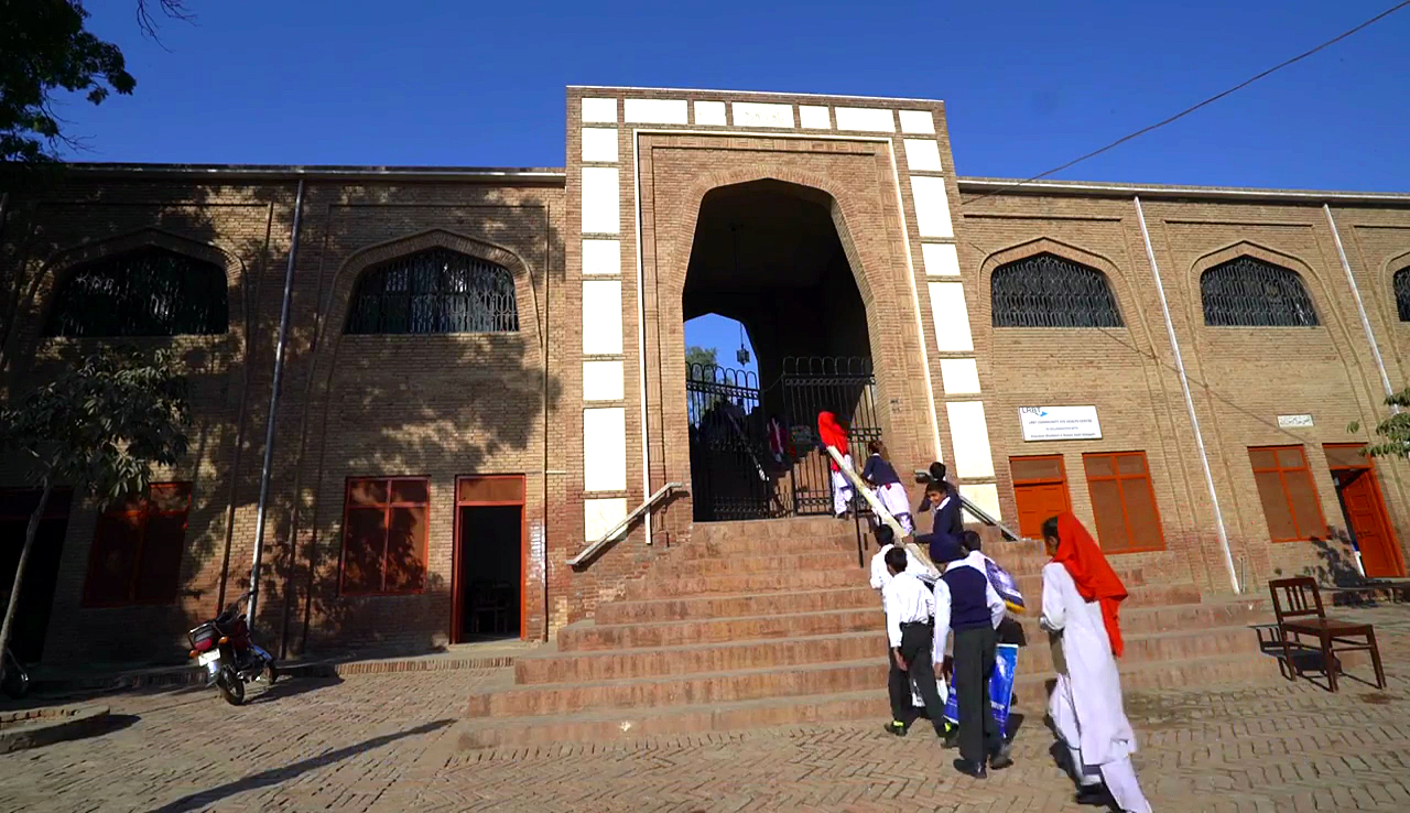 First, the derelict 16th century Sher Shah Suri mosque was rebuilt with the addition of a school for girls, a first for the town. From then to now, there are 32 schools with 4000 pupils, more than half of whom are girls. Classes go from class 1 to 12, and the high school has computer and science labs too. High School premises for students and neighbours of the facility. The School system also includes a teacher-training centre.
